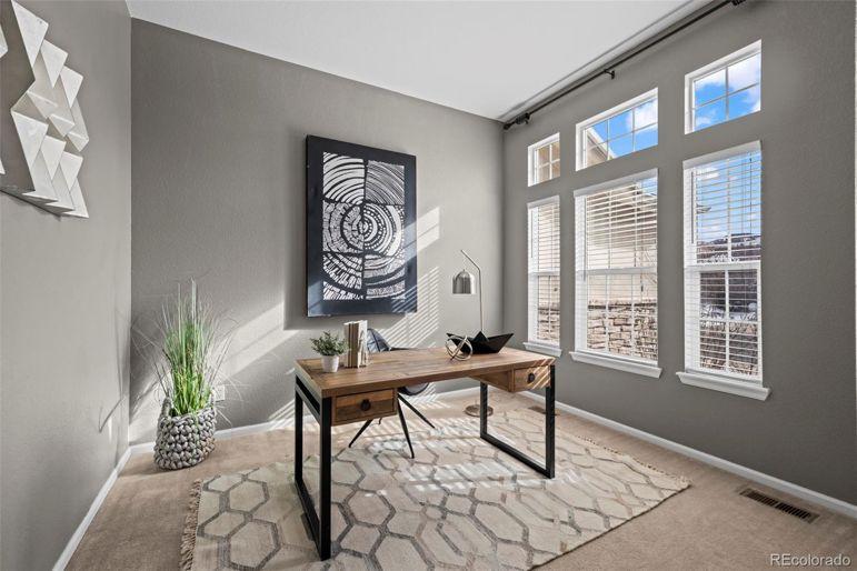 Designed for effortless living this open-concept home features a spacious main level primary suite and light filled gathering spaces. Nestled in the desirable Conservatory community this home is in an ideal location backing to greenbelt and walking trail. The home boasts lots of square footage as one of the largest models with space for everyone. Enjoy a welcoming entry and front office space. Sitting and dining areas with tons of natural light are also great for hosting gatherings. The great room with gas fireplace and large windows flows seamlessly to the bright kitchen with over-sized island, eating nook and pantry. The spacious primary suite is located on the main level and includes a large 5 piece bathroom and walk-in closet. There are three spacious bedrooms upstairs and full bathroom. The full size basement features tons of storage or is ready for your future finish. Convenient oversized 2.5 car garage and main floor laundry with mud sink. Recent updates/upgrades you are sure toGeneral Features