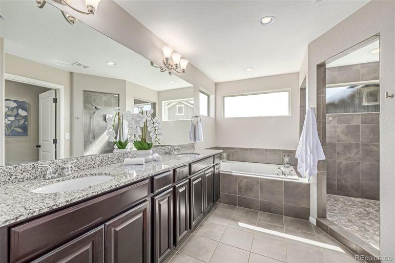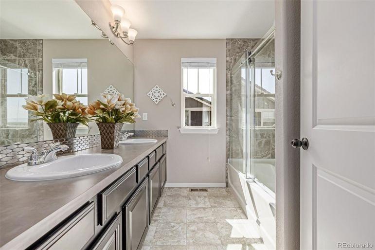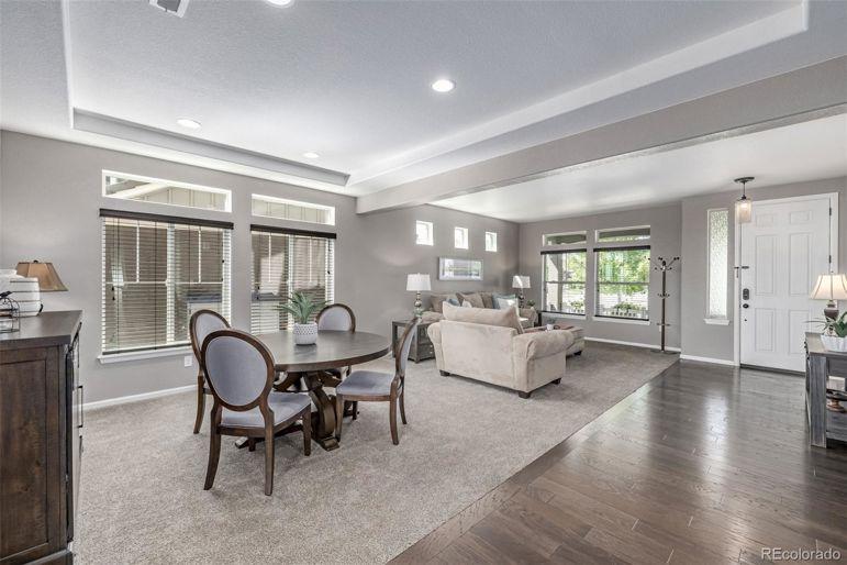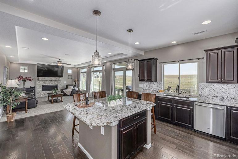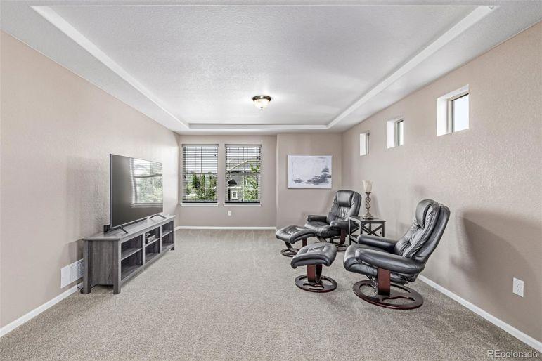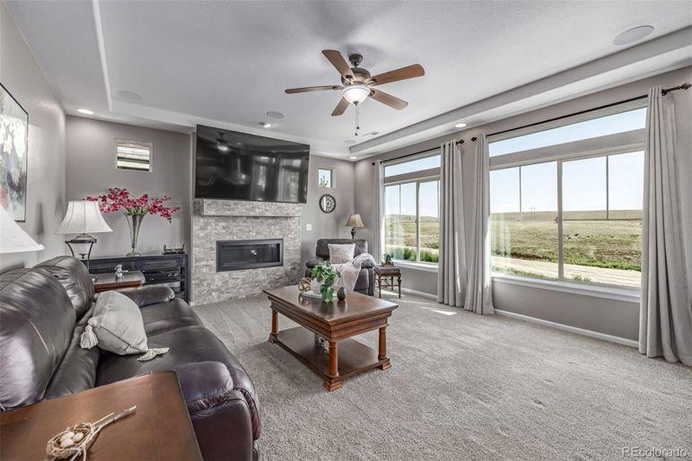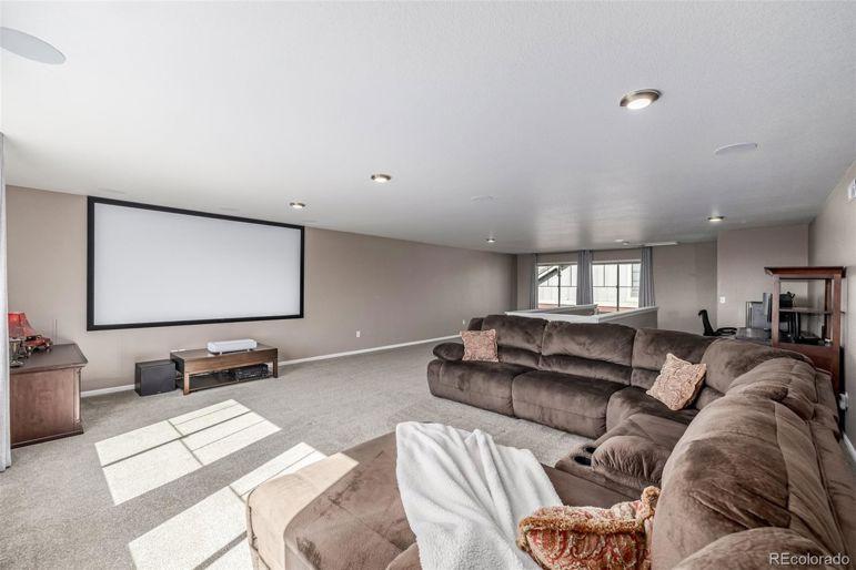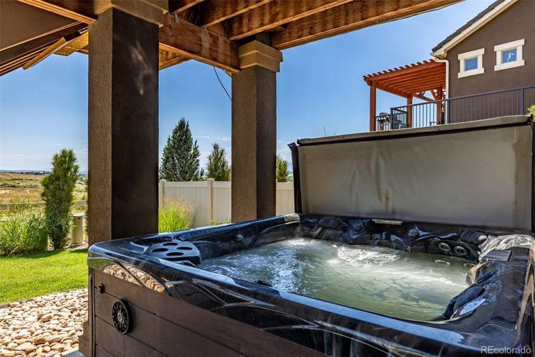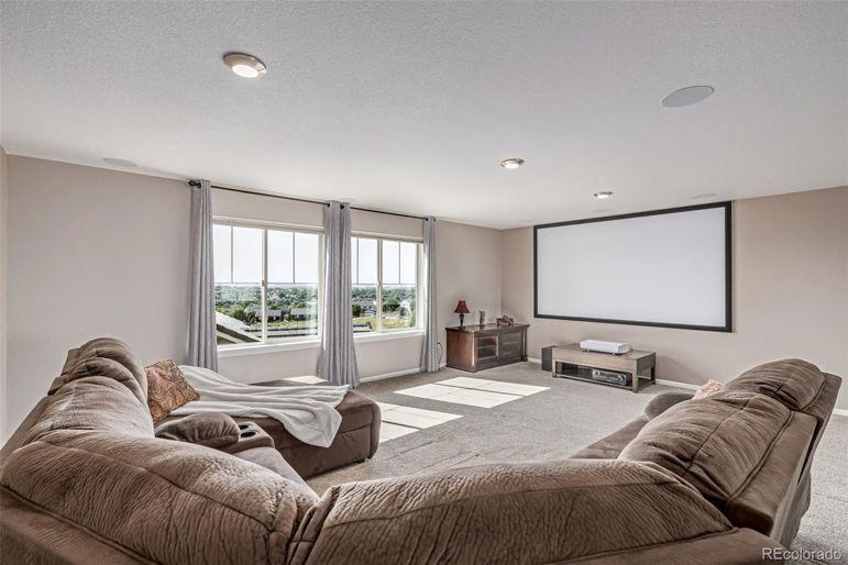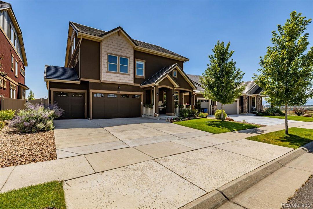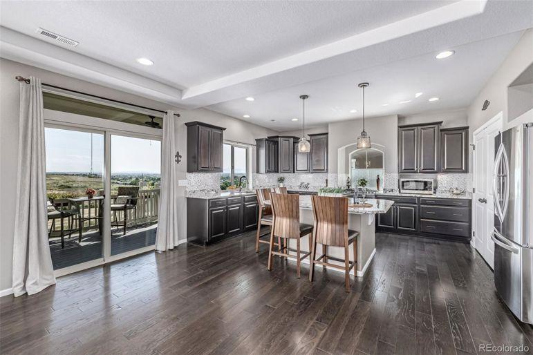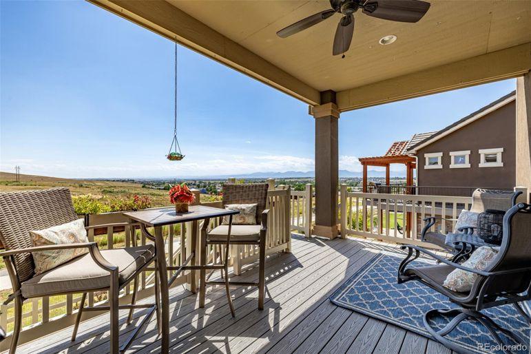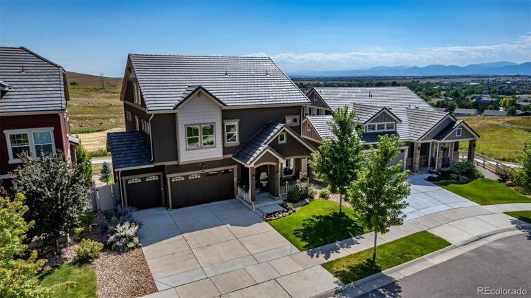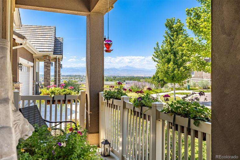 Enjoy sweeping Front Range mountain views from your front porch, back deck, and throughout this exceptional home. At night, take in the twinkling city lights while relaxing in your private backyard oasis. Perfectly situated backing to open space, this property ensures your privacy. Inside, this home offers both comfort and flexibility. The main level features distressed luxory vinyl plank flooring, elegant tray ceilings, and a gourmet kitchen complete with stainless steel appliances, a gas cooktop, a large walk-in pantry, custom tile backsplash, slab granite counters, and an oversized island perfect for entertaining. A custom fireplace wall with designer tile adds warmth and style to the living space. Both the family room and third-floor bonus space are equipped with built-in surround sound speakers. Upstairs, you'll find four spacious bedrooms, including a private guest suite and a luxurious primary suite with a five-piece bath. A bonus room completes the second level. The bonus thirGeneral Features