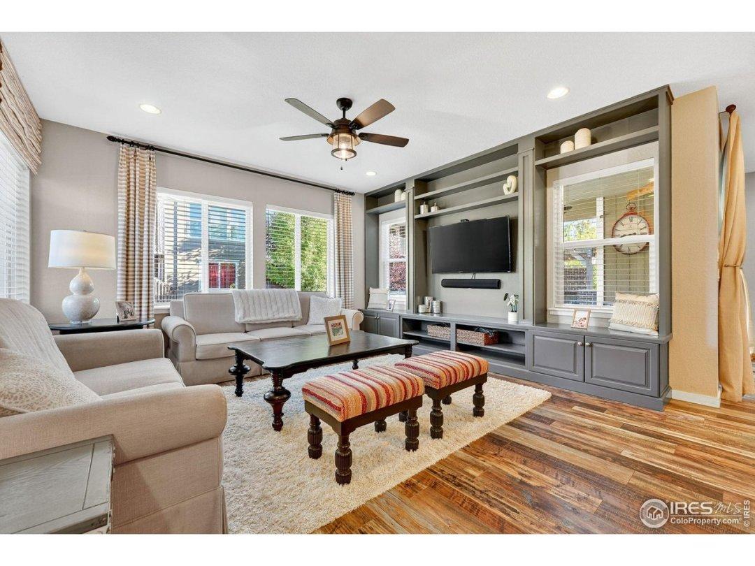 Welcome to this stunning former model home tucked away on a quiet Cul-de-sac in Erie. Offering 2 bedrooms plus an office on the main floor, this home is filled with thoughtful design and stylish updates. The main level showcases beautiful built-ins, upgraded kitchen and bathrooms including a large walk in shower in the primary suite, and a spacious laundry room. Step outside to your private backyard retreat, featuring a covered patio with gas line for your BBQ, and a large brick fireplace under a charming pergola-perfect for entertaining or relaxing evenings outdoors.The finished basement is ideal for multi-generational living with two additional bedrooms, a full bathroom, living and dining areas, washer/dryer hookups, a secret storage closet, and plumbing ready for a future kitchen. Residents enjoy resort-style amenities, including two pools, exercise facilities, clubhouse, trails, and parks. All of this just 20 minutes to downtown Boulder and 25 minutes to downtown Denver. This homeGeneral Features